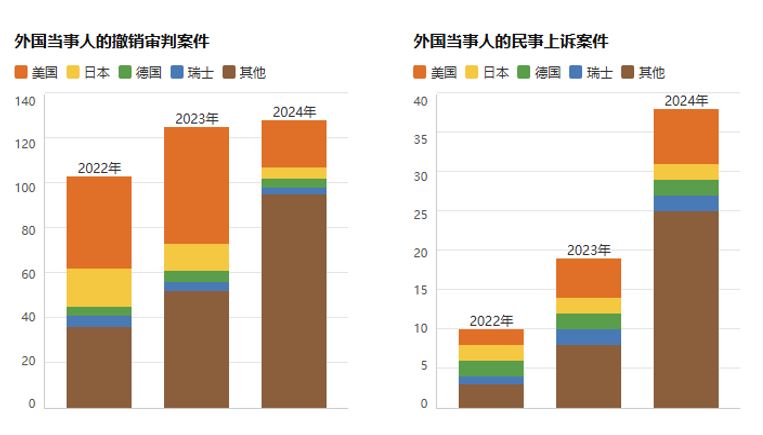 涉及外国当事人的诉讼案件在特许法院呈持续增长态势。2022年至2024年间,特许法院受理的涉外案件数量如下: